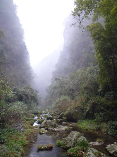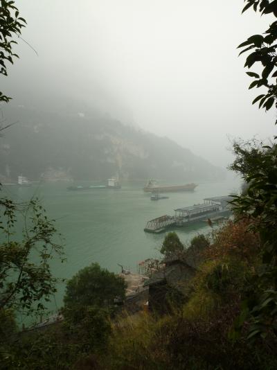 Die Erwartungen für den nächsten Tag waren entsprechend gering. Morgens ging es mit einem Minibus irgendwo in die Berge. Gesehen hat man nichts. Nur der Fahrer dachte anders darüber, und fuhr auf den nassen, kurvigen Straßen wie ein Rennfahrer. Neben der aufkommenden Übelkeit, waren vor allem die steilen Abhänge und die gewagten Überholmanöver stimmungssenkend. Als dann wieder zusätzliche Tickets gekauft werden mussten, war die Laune gänzlich hinüber. Dann waren wir endlich da. Und alles wurde anders. Tief in Nebel gehüllt waren die hohen Berge, vor uns der grünliche Jangzi, in grauer, stiller Grazie. Mit dem Schiff ging es auf die andere Flussseite, dann mit einer Gondelbahn in die Berge. Faszinierende Landschaft, bizarre Felsformationen und in der Tiefe immer der Jangzi.